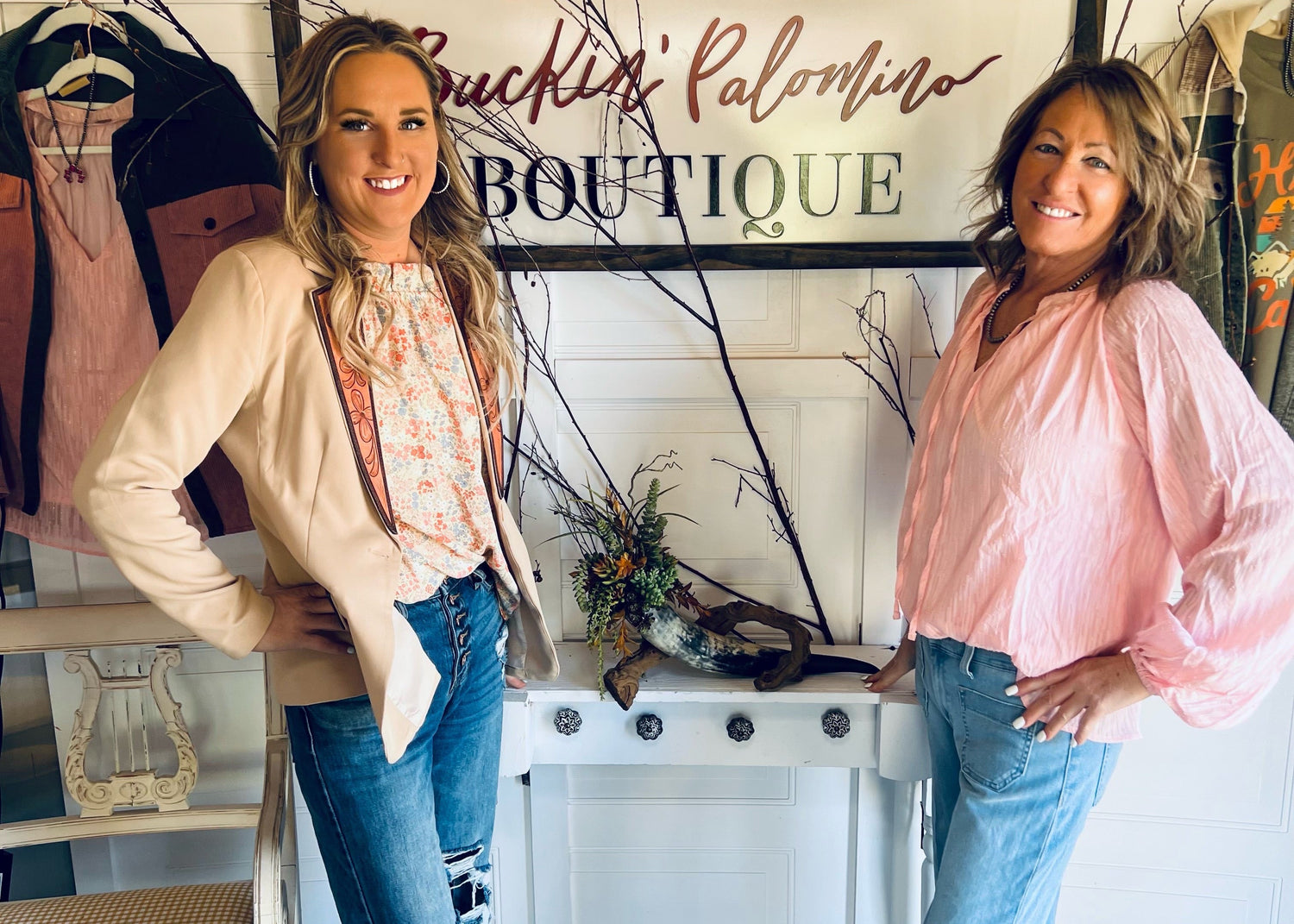 Hey, y’all! Welcome to The Buckin’ Palomino Boutique—proudly owned and operated by a mother-daughter duo, Trudie Harris and Joelle Ford. We offer a hand-picked selection of clothing, shoes, jewelry, and more—sourced through our regular trips to the Dallas Market to bring you the latest styles and western trends we truly love.